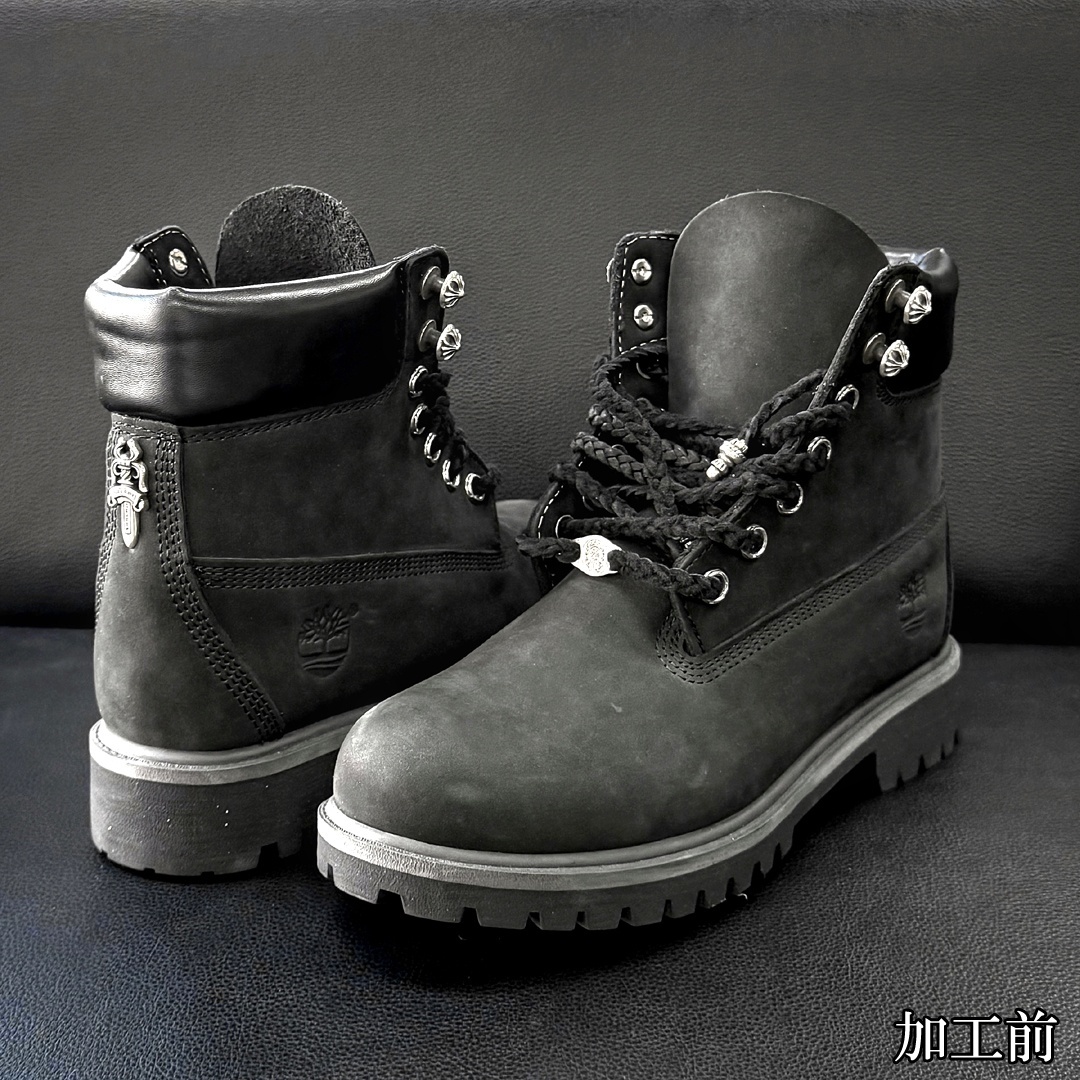 加えて、雨や汚れにとても強いと言われている、プレミアフルグレインウォータープルーフレザー、耐久性とトラクションに優れたラバーラグアウトソールを使用したティバーランドブーツへのカスタムとなるので、見た目も実用性も非常に高い、おすすめのクロムハーツカスタムとなります♪