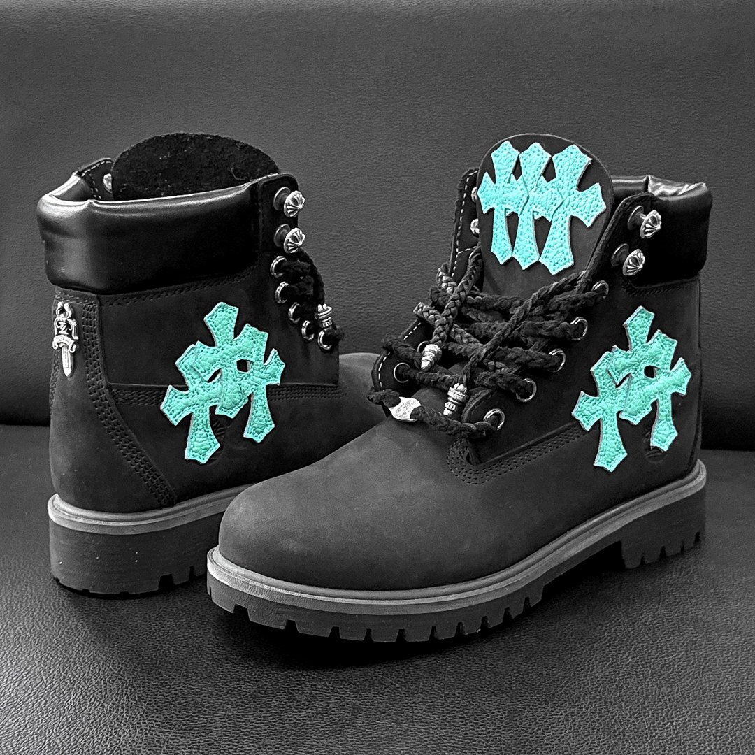 Chrome Hearts(クロムハーツ)x Timberland(ティンバーランド)コラボモデル レザーパッチ カスタム ティファニーブルー 6インチ ヌバックレザー ワークブーツ