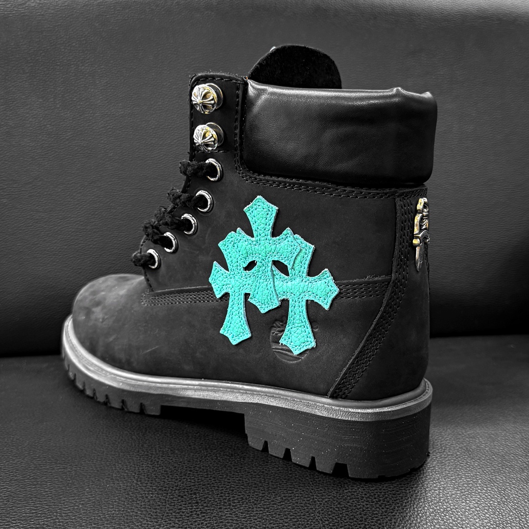 Chrome Hearts(クロムハーツ)x Timberland(ティンバーランド)コラボモデル レザーパッチ カスタム ティファニーブルー 6インチ ヌバックレザー ワークブーツ [ch-tbl-lp-tb-custom]