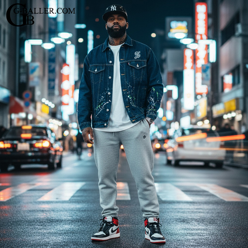 ペイントカスタムのヴィンテージライクなデニムジャケットの胸元にスワロフスキーが輝きます。