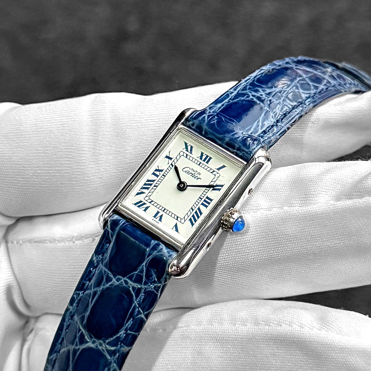 CARTIER Must de Tank SM 6057002 White Roman Blue Leather Strap SV925 Vintage [mt-6057002-250801-c24]
