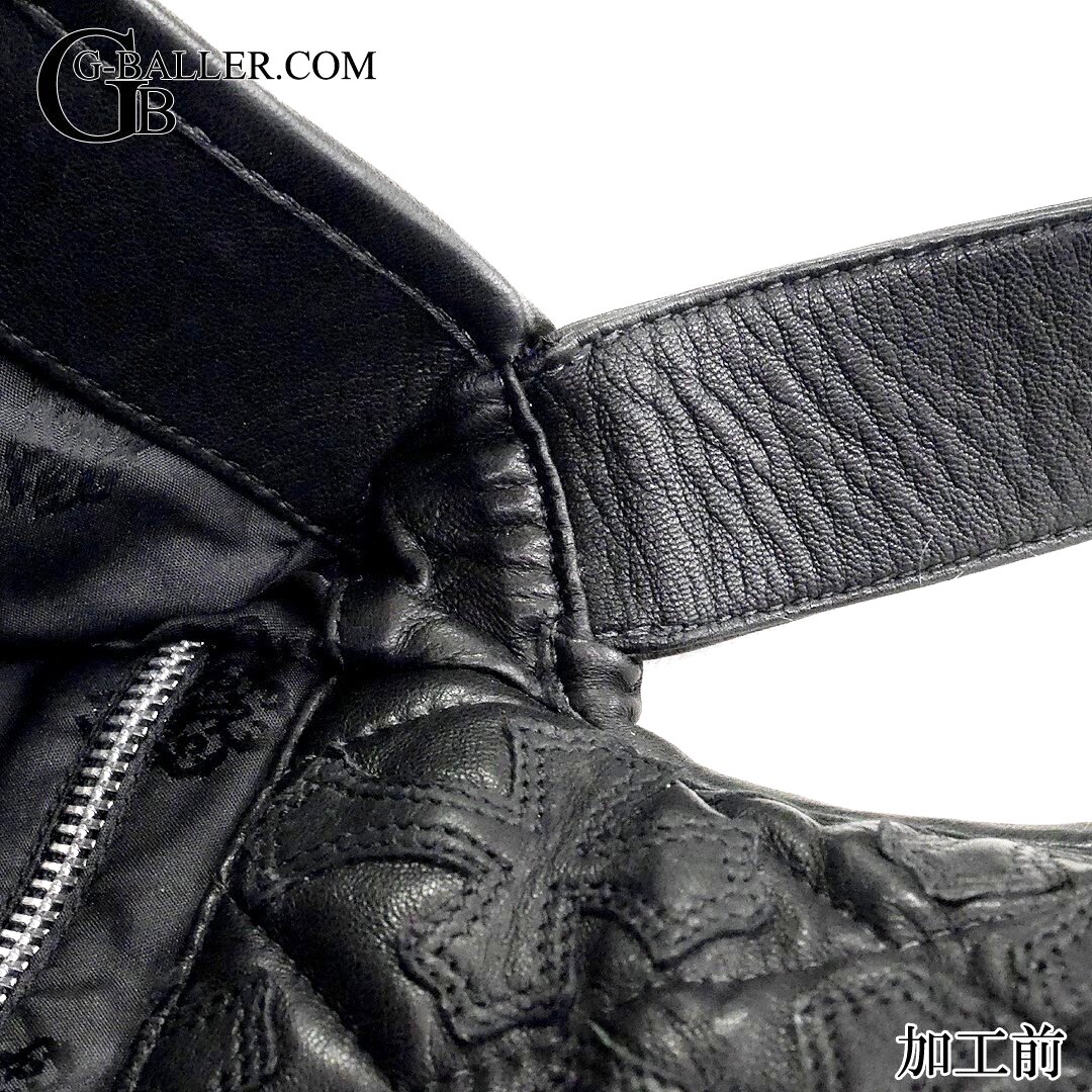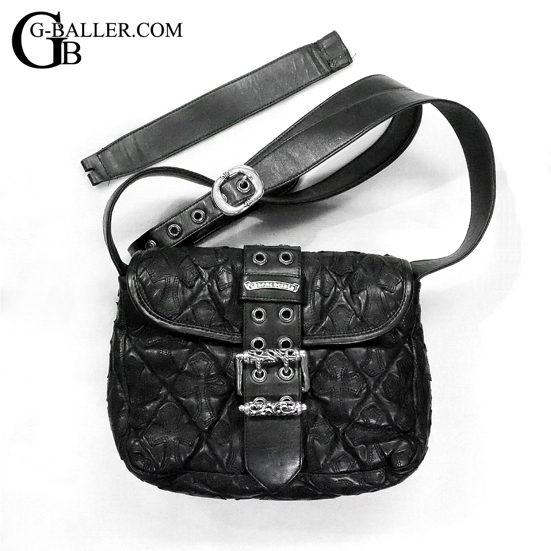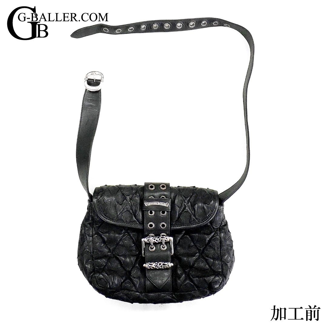 クロムハーツ修理 G-BENDER セメタリー クロスパッチ キルテッド レザー ショルダーバッグ ストラップ レザー 延長加工